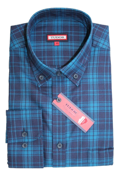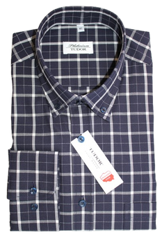 KOSZULA TUDOR DŁUGI RĘKAW REGULAR 176/182, 100% BAWEŁNA, KRATKA