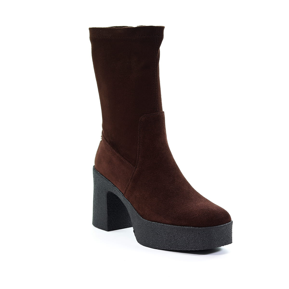 - Botki marki GOE wykonane z wysokogatunkowej skóry zamszowej w połączeniu z tkaniną kolorze brązowym.