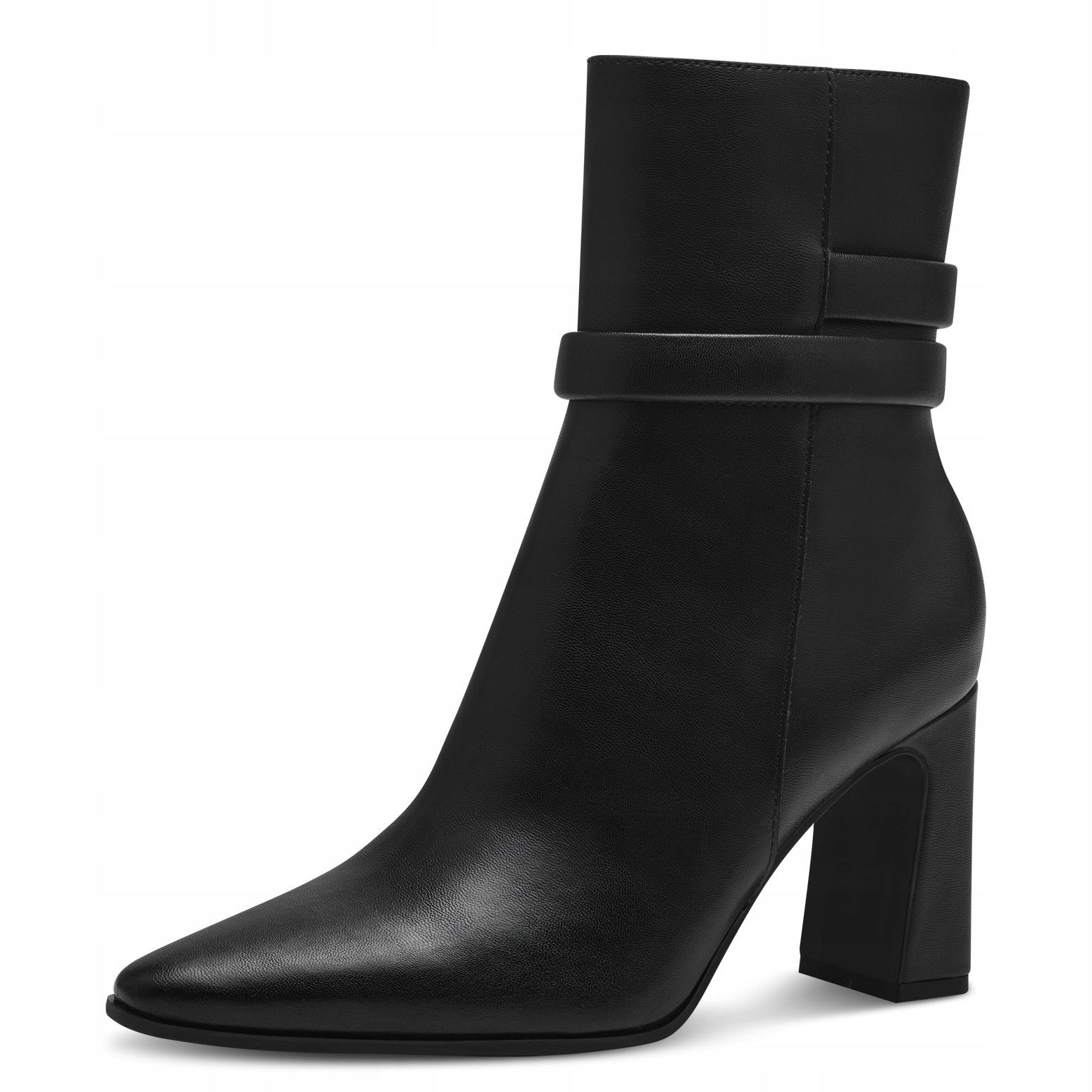 - Botki od marki Marco Tozzi wykonane z wysokogatunkowej skóry ekologicznej w kolorze czarnym.