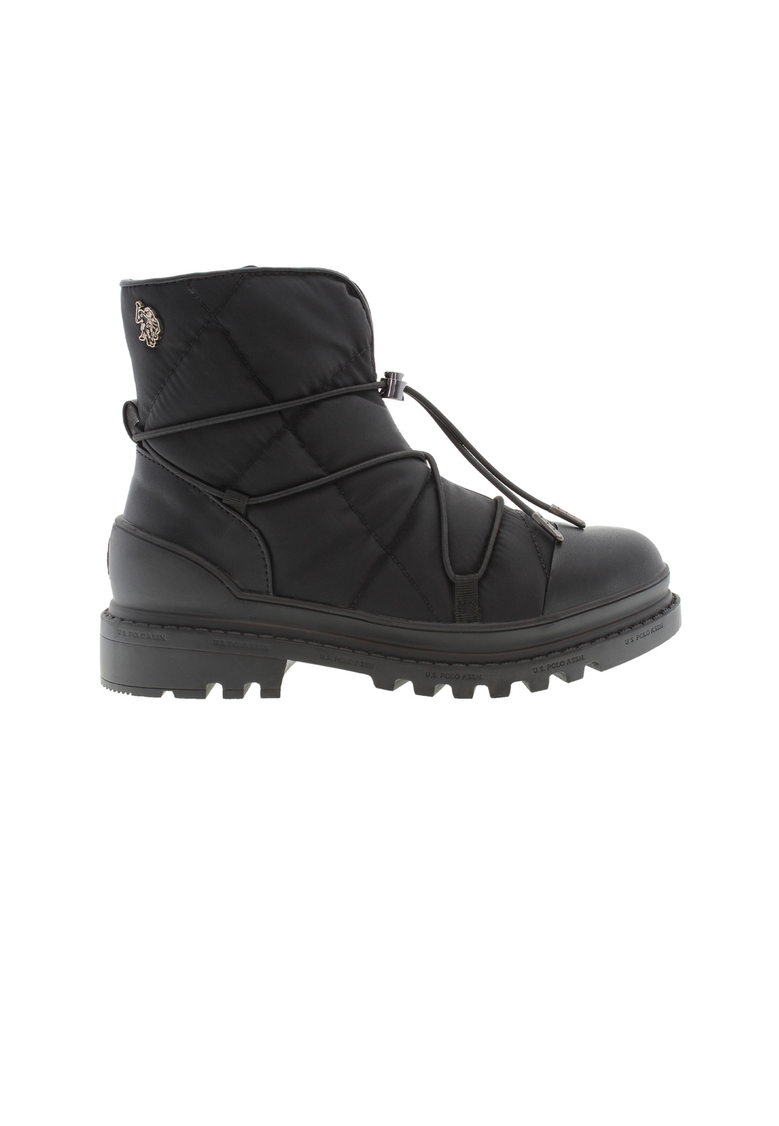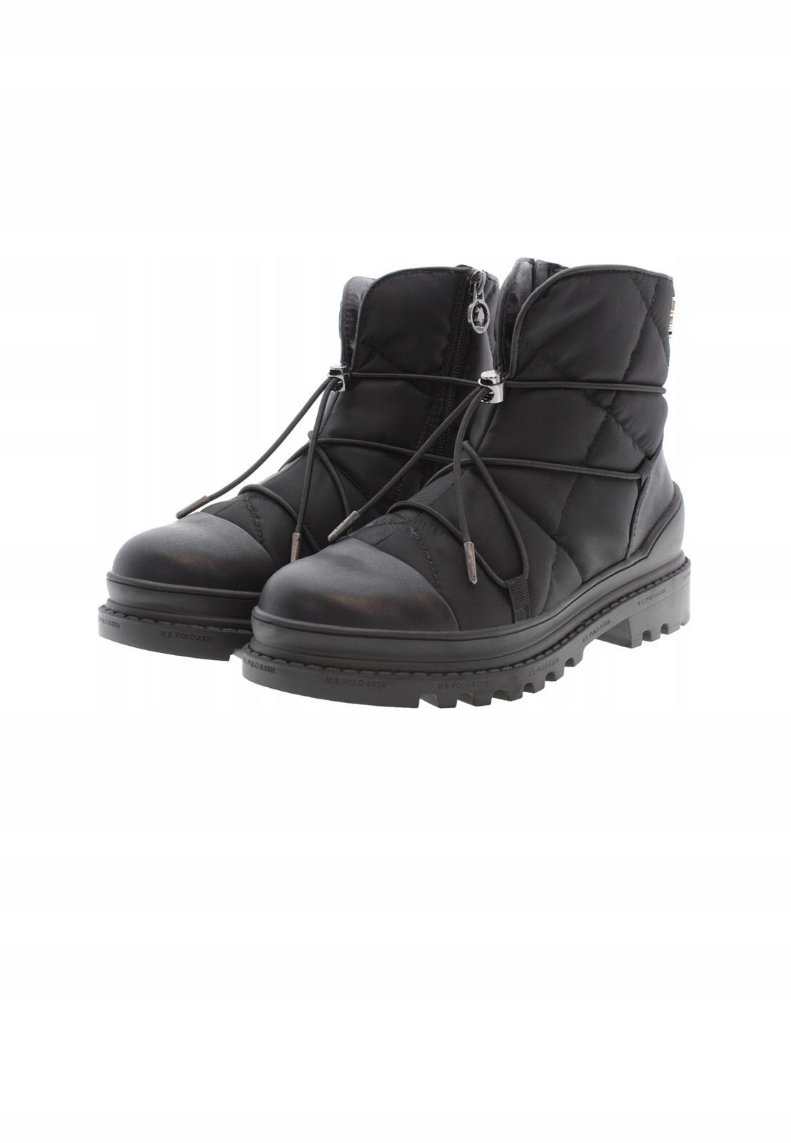 - Botki od amerykańskiej marki U.S. POLO ASSN. wykonane z połączenia wysokogatunkowego materiału i tworzywa skóropodobnego w kolorze czarnym