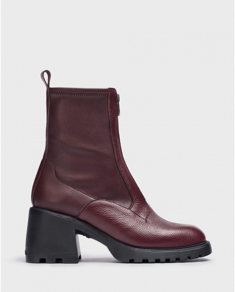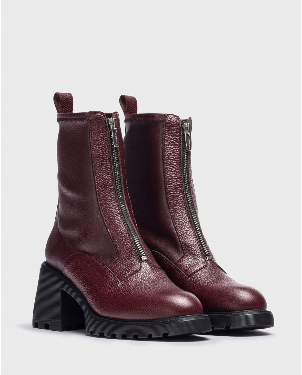 - Świetny fason botków od hiszpańskiej marki Wonders wykonany z połączenia wysokogatunkowej skóry naturalnej groszkowej z tkaniną,w pięknym winnym odcieniu borda.