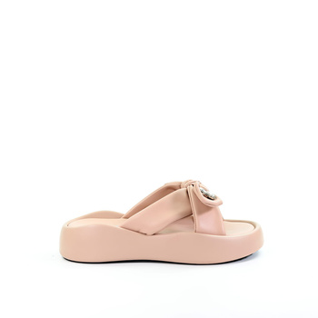 - Klapki od marki GOE wykonane z wysokogatunkowej skóry naturalnej w kolorze różowym.