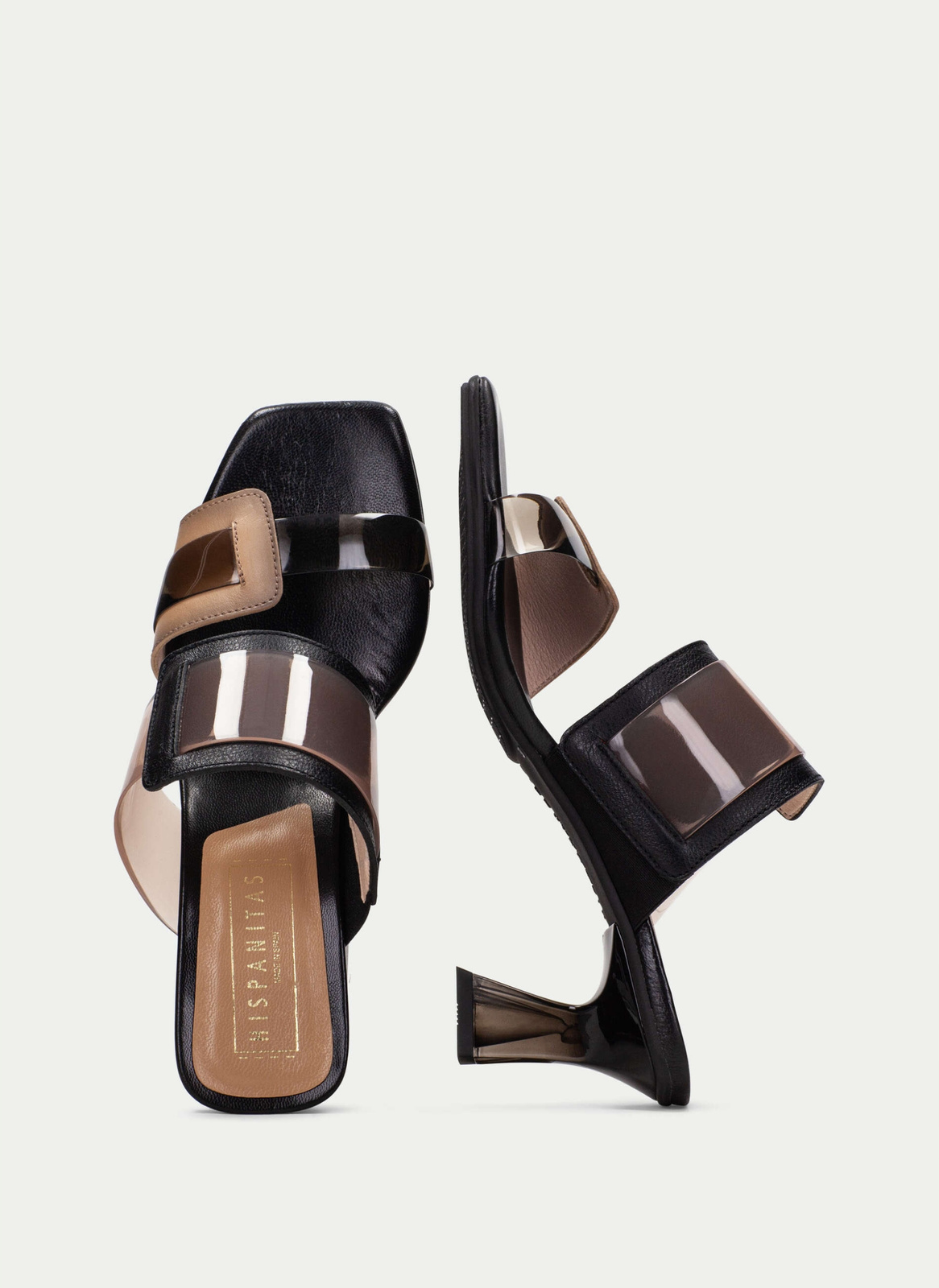 - Świetne klapki marki Hispanitas wykonane z wysokogatunkowej skóry naturalnej w połączeniu z tworzywem w klasycznym zestawieniu kolorystycznym czerni i beżu.