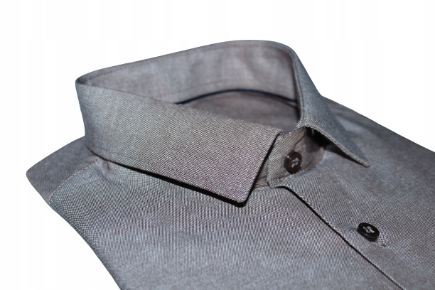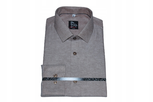 Elegancka, męska koszula z długim rękawem marki elPasso wykonana z wysokiej jakości tkaniny w odcieniu ciemnego beżu. Tkanina z wykończeniem typu melanż.
