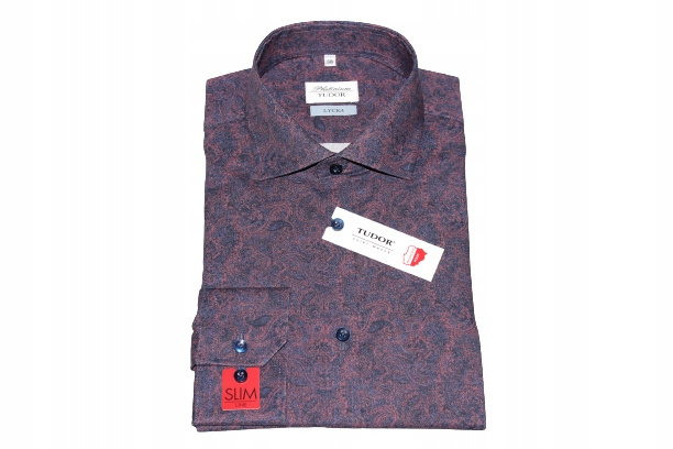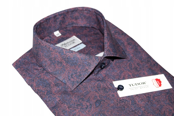 - Koszula męska z długim rękawem marki TUDOR z linii Platinium, wykonana z wysokiej jakości tkaniny w kolorze granatowo-bordowym