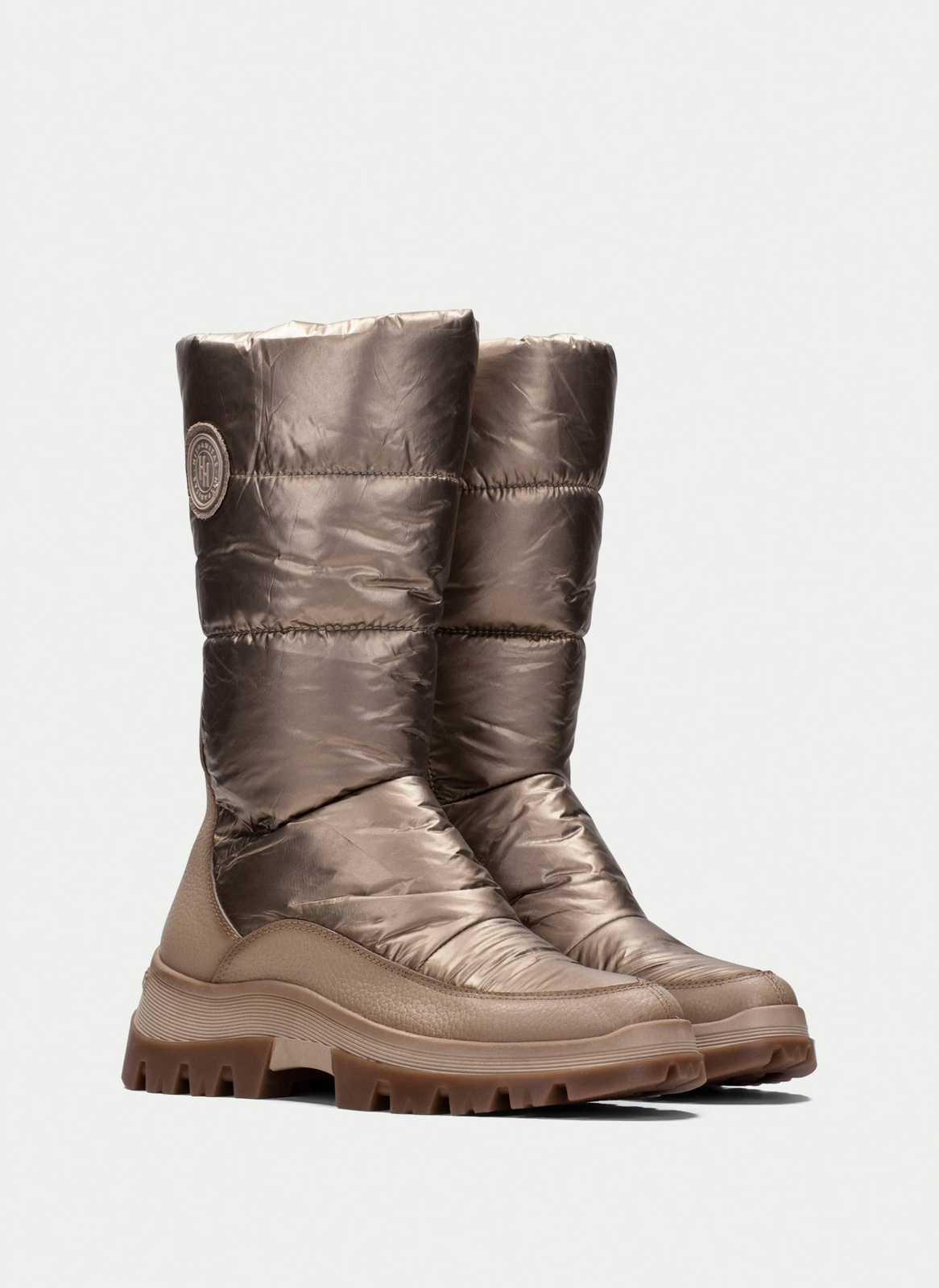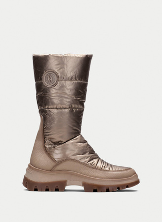 - Kozaki w sportowym stylu od marki Hispanitas wykonane z połączenia wysokogatunkowej skóry licowej z tkaniną.