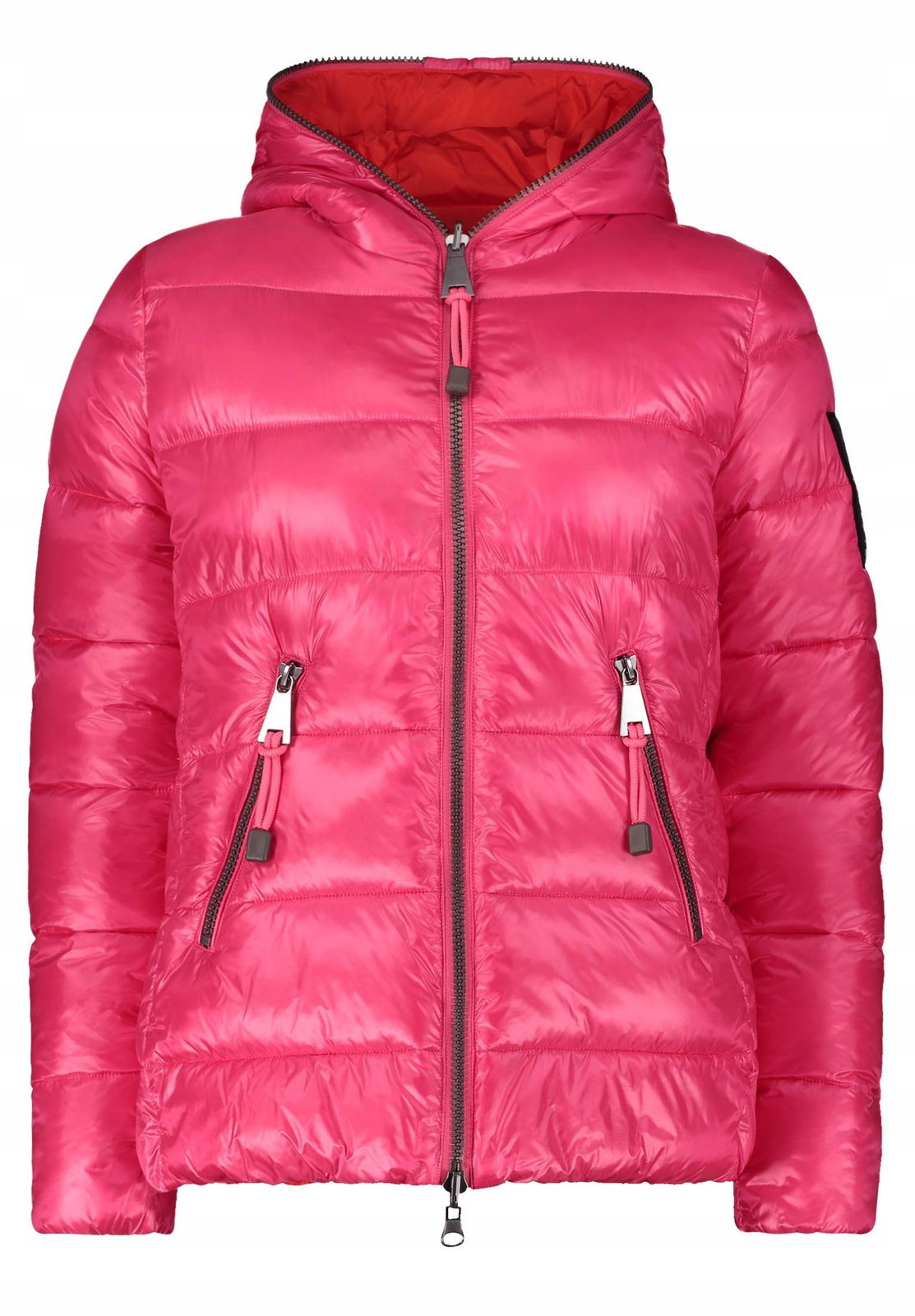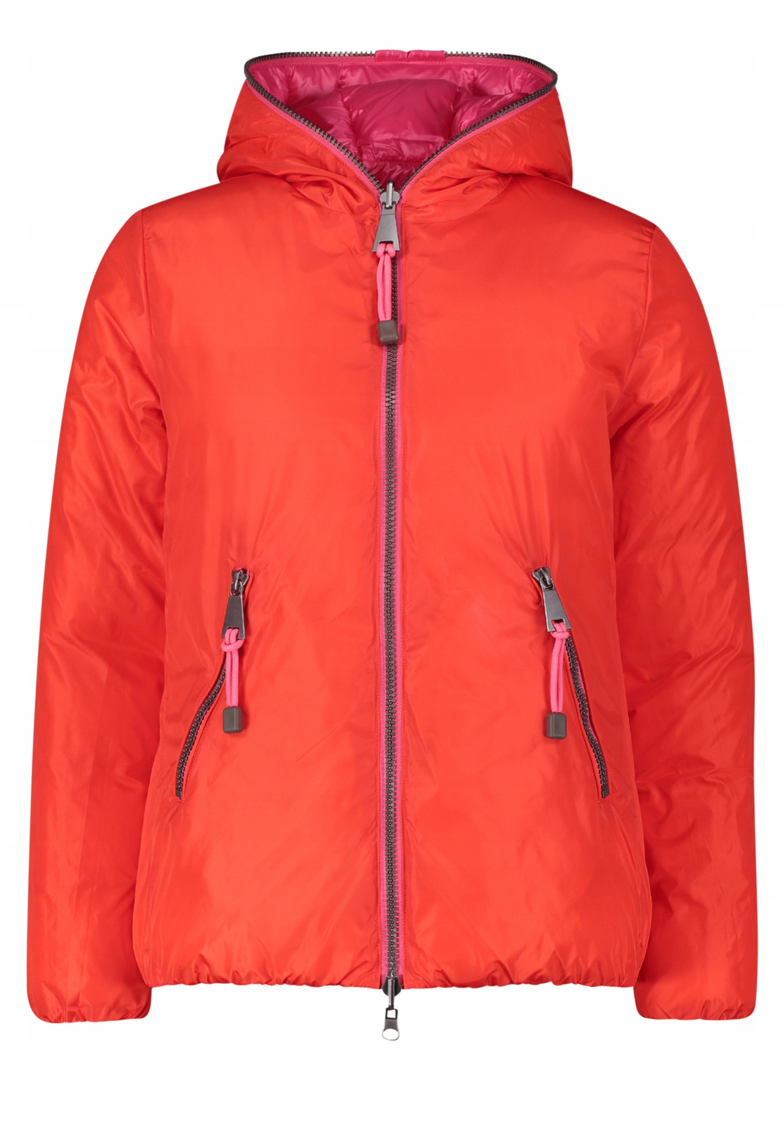Pikowana kurtka z najnowszej kolekcji. Kurtka jest dwustronna, zapinana na dwukierunkowy zamek. Długość całkowita kurtki ok. 68 cm. Dwie kieszenie zapinane na zamek. Kaptur nie odpinany.