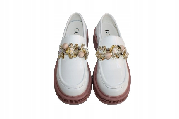 - Mokasyny marki GOE wykonane z wysokogatunkowej skóry naturalnej lakierowanej w kolorze białym