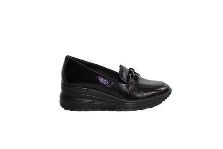 - Komfortowe mokasyny od włoskiej marki Imac wykonane z wysokogatunkowej skóry lakierowanej w kolorze czarnym.
