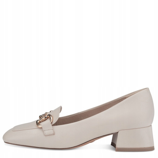 - Mokasyny od marki Tamaris wykonane z wysokogatunkowej skóry naturalnej w kolorze beżowym.