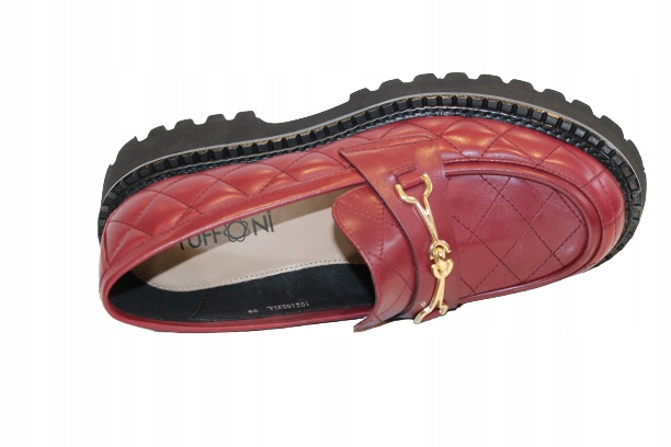- Świetne mokasyny od marki Tuffoni wykonane z wysokogatunkowej skóry w pięknym, bordowym odcieniu.