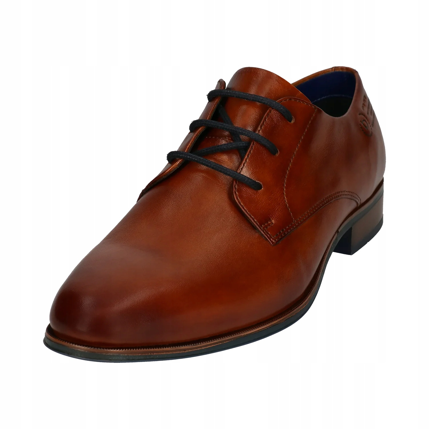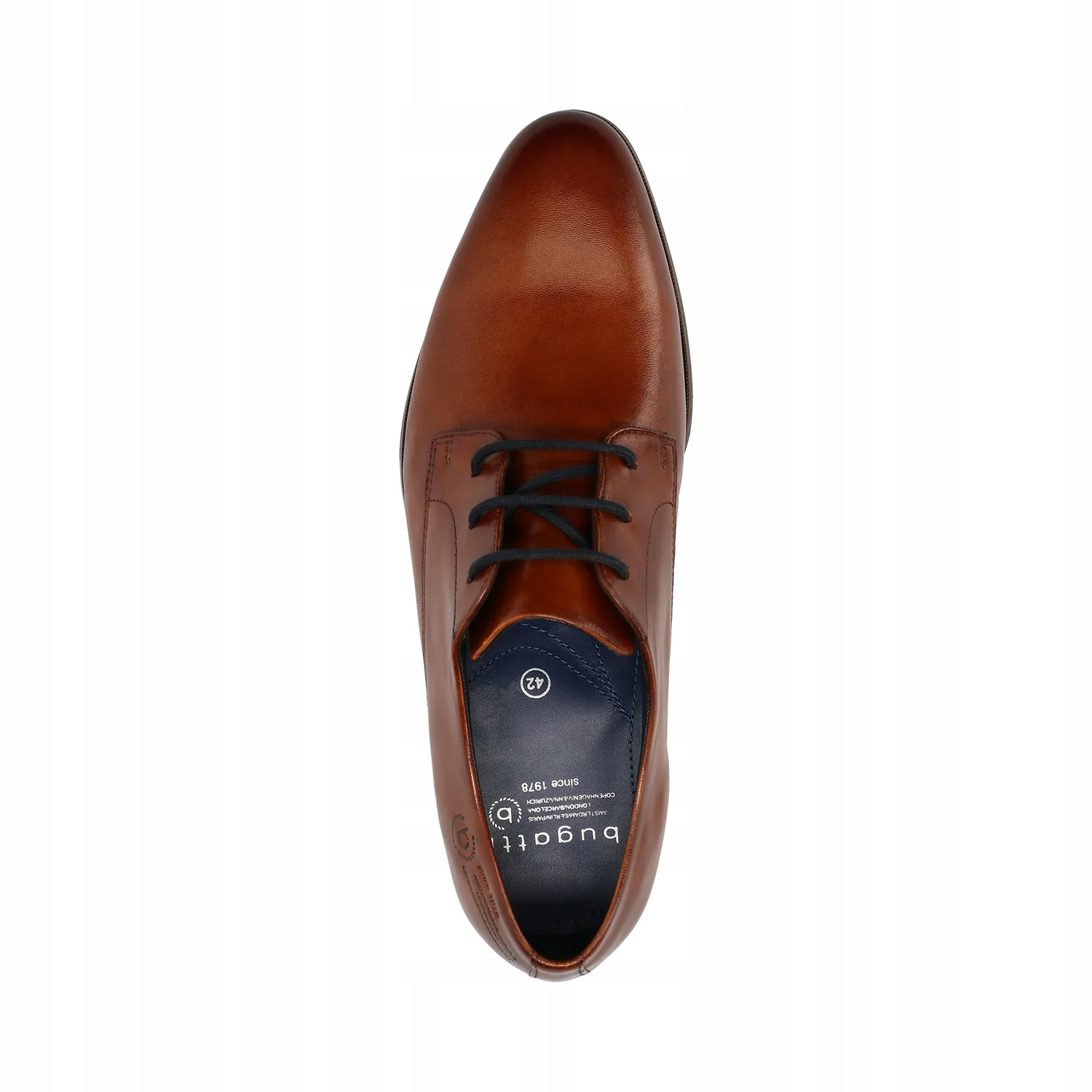 - Elegancki fason męskich półbutów marki Bugatti, wykonany z wysokogatunkowej, cieniowanej skóry licowej w odcieniach brązu.