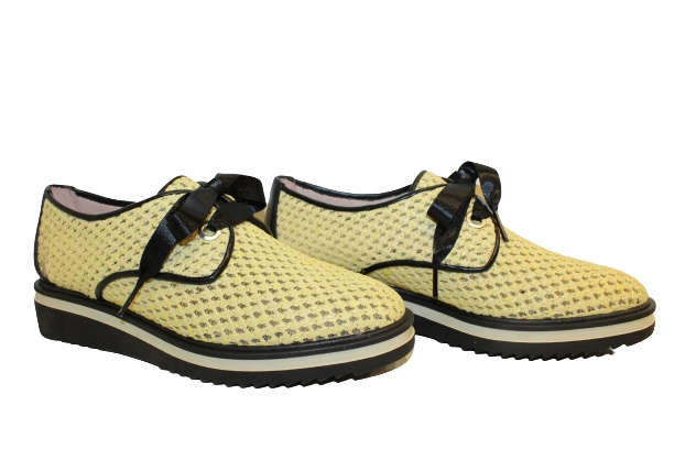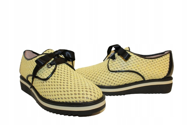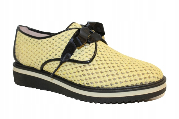 - Półbuty hiszpańskiej marki Hispanitas wykonany z połączenia wysokogatunkowej skóry naturalnej i materiału w odcieniu pastelowej żółci.