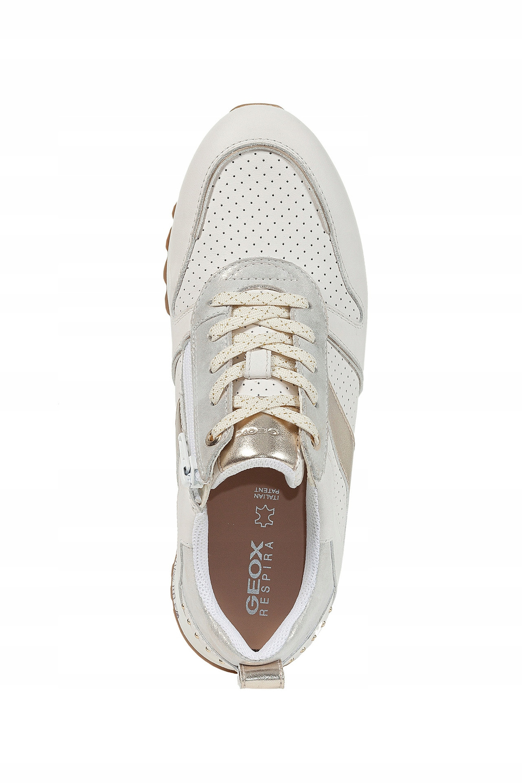 - Klasyczne sneakersy marki GEOX wykonane z wysokogatunkowej skóry i tworzywa w odcieniu off white.