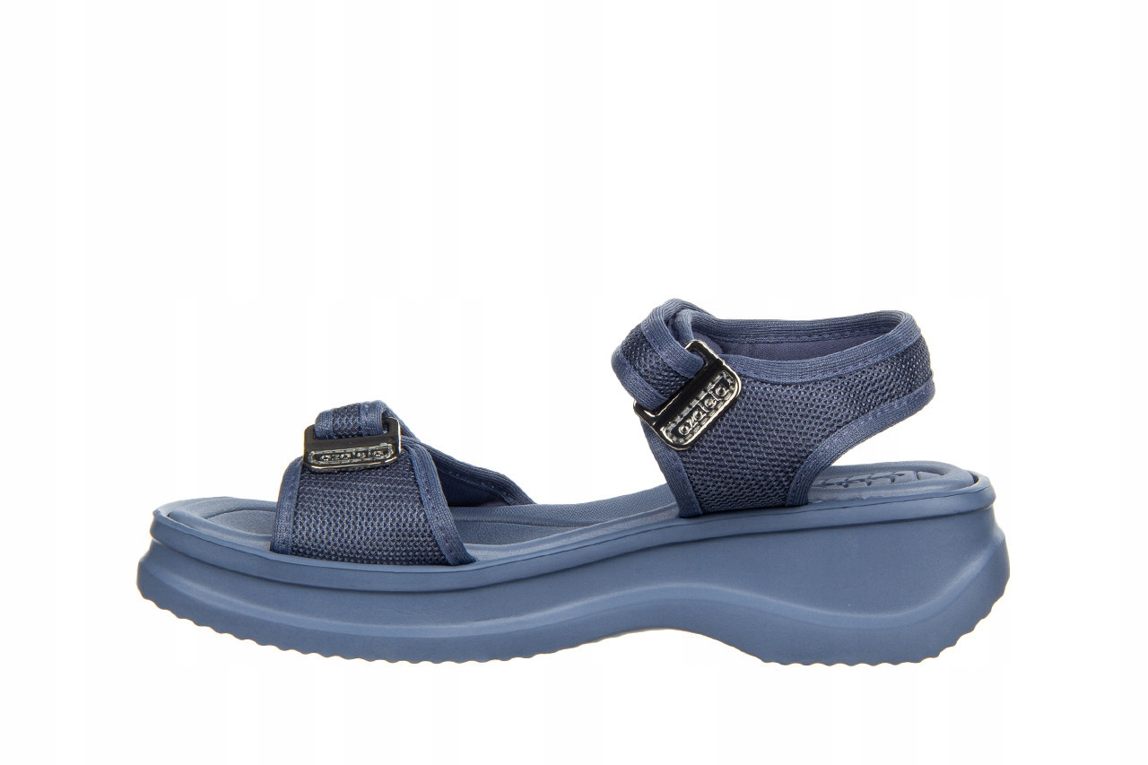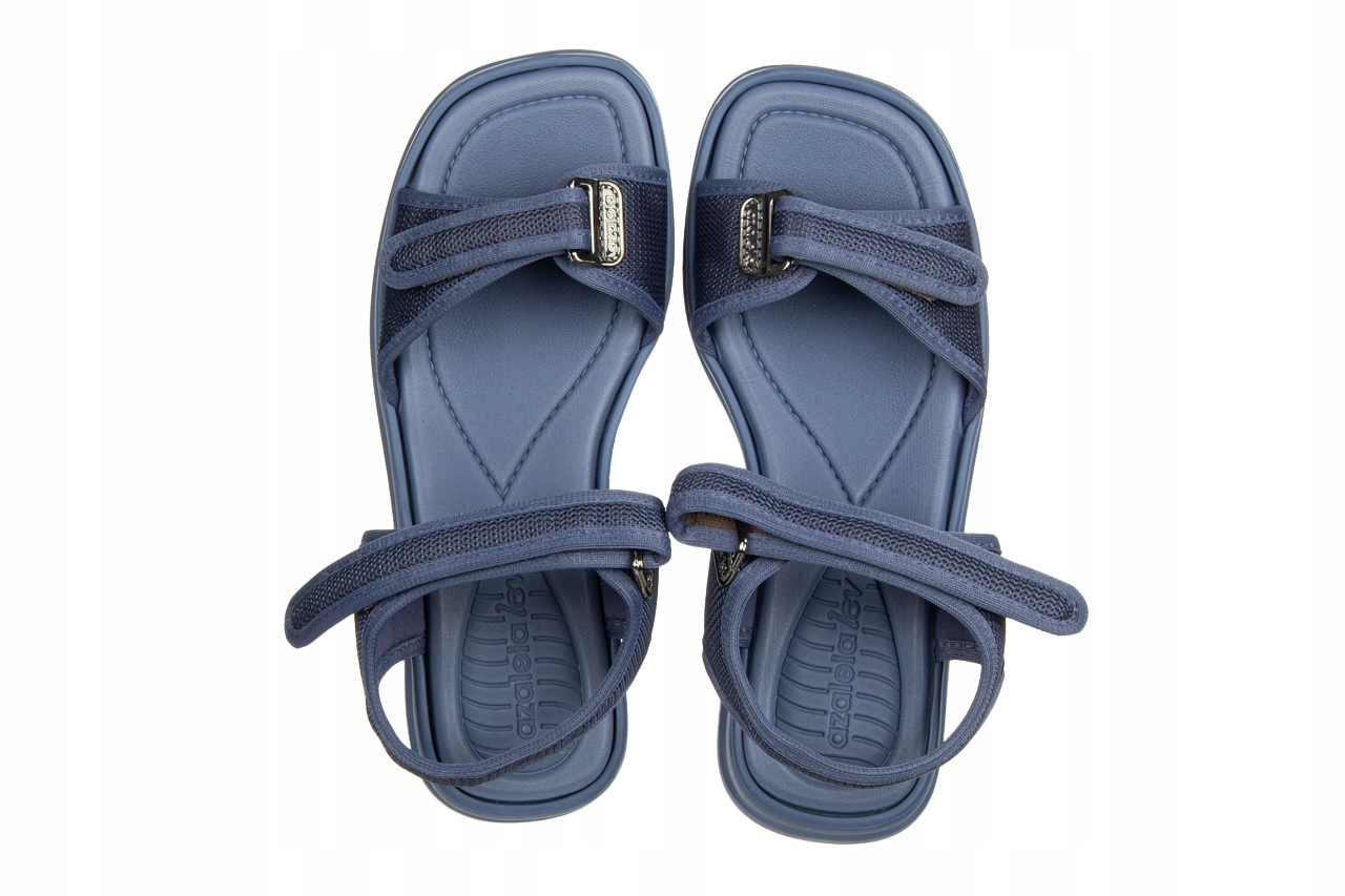 - Sandały od marki brazylijskiej marki Azaleia wykonane z wysokogatunkowej tkaniny w kolorze niebieskim.
