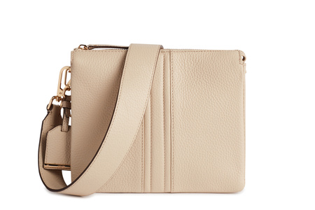 Torebka typu crossbody wykonana z wysokogatunkowej skóry naturalnej. Posiada jedną główną komorę zapinaną na zamek. Wnętrze podzielone jest na trzy przegrody, w tym jedna zapinana jest na zamek. Detale w kolorze złotym. Całość zawieszona jest na szerokim, regulowanym pasku.