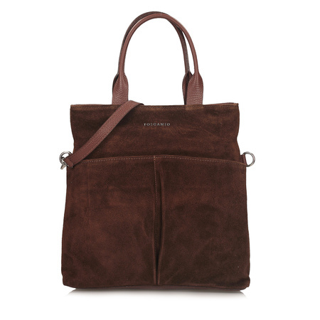 Przedni panel torebki został wykonany z miękkiej skóry zamszowej, która nadaje całości szlachetnego charakteru, natomiast pozostałe elementy wykonano ze skóry naturalnej licowej. Model ma jedną pojemną komorę i dwie kieszenie wewnętrzne, które pomogą uporządkować zawartość. Całość zamykana jest na solidny metalowy zamek w kolorze srebrnym. Dzięki wygodnym uchwytom o długości 35 cm torebkę można nosić zarówno na ramieniu, jak i w dłoni.