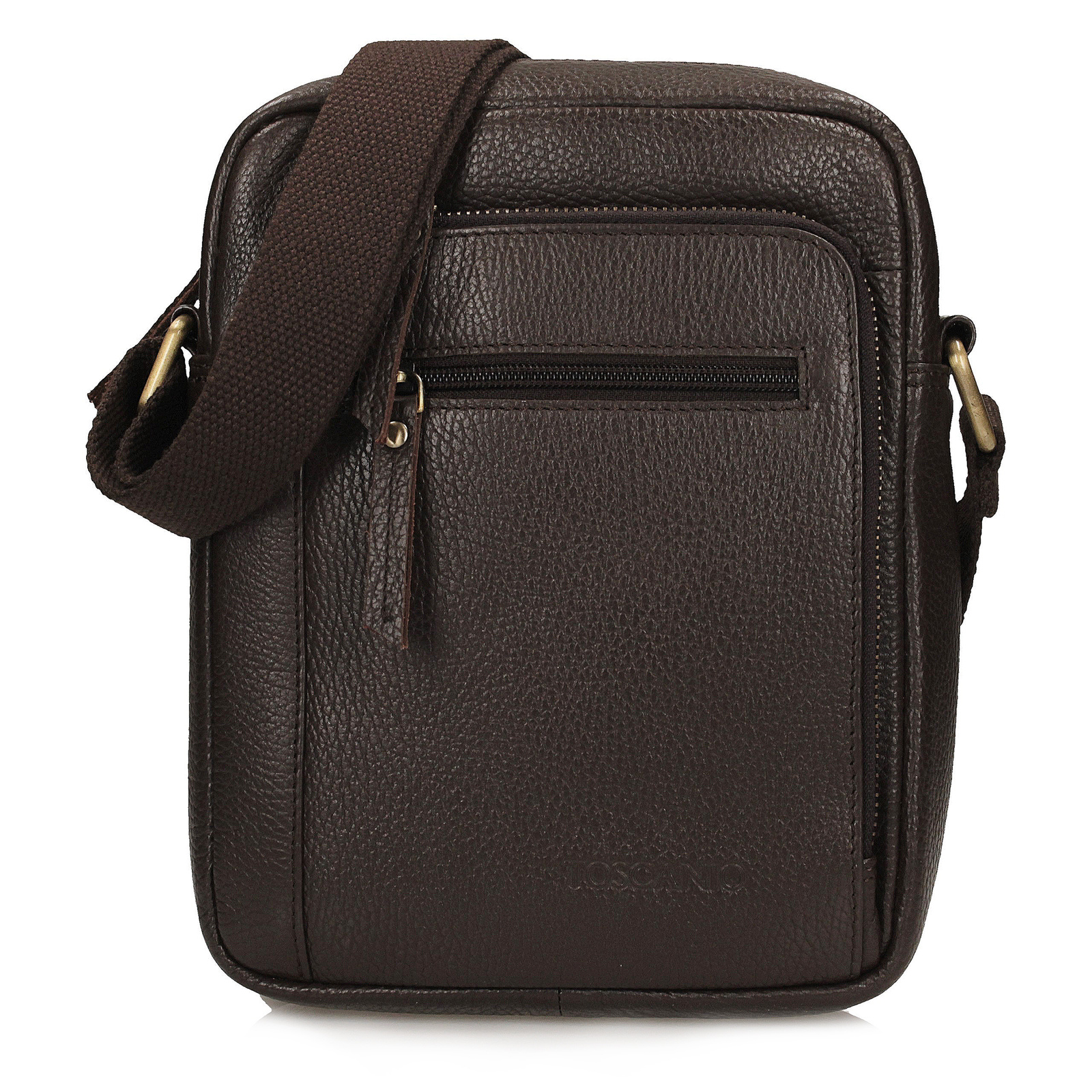 - Torebka wykonana z naturalnej, włoskiej skóry, wyposażona w jedną główną komorę zamykaną za pomocą zamka, zawierającą wewnątrz dwie mniejsze kieszonki oraz dwie dodatkowe na zewnątrz. Produkt zawieszony jest na regulowanym pasku. Dno przedmiotu jest usztywniane.